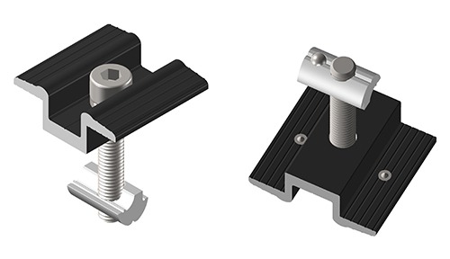 Abrazaderas de montaje de aluminio para paneles solares fotovoltaicos con clavijas de conexión a tierra | ART SIGN