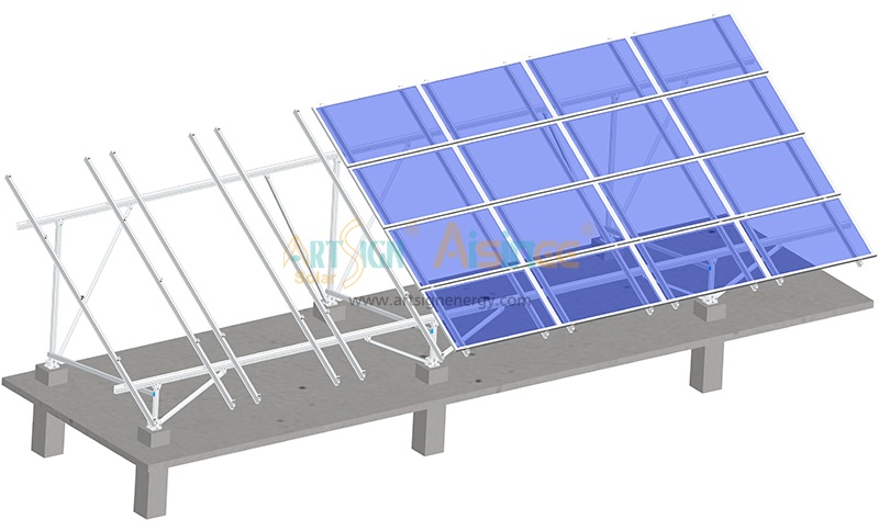 Good for large projects and hard soil. They are hammered into the ground, very strong for heavy snow and wind. They need special tools but are stable for a long time. We recommend you use our ramming pile ground mount solution.